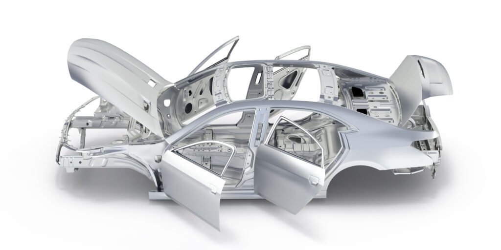 is the car’s structure the body, seats, steering wheel, engine bay. It gives everything its place but it’s not painted or moving yet.